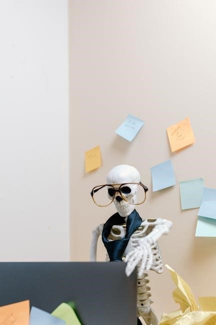 Joints, crucial for movement, connect bones within the skeleton; A blank skeleton diagram PDF helps visualize these connections.